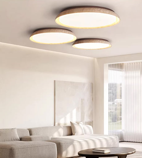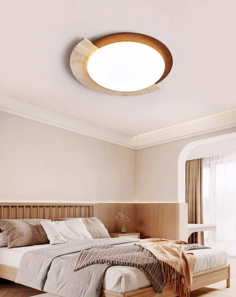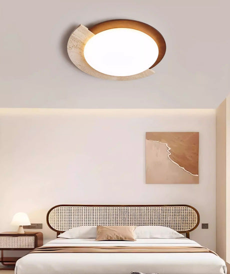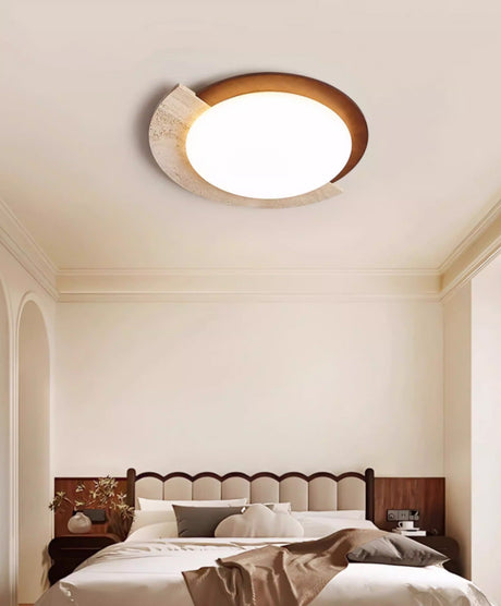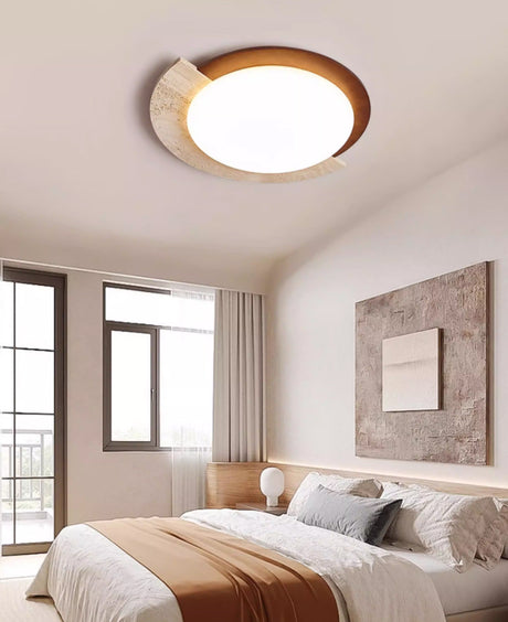 מנורת תקרה קרמה – טרוונטין טבעי | LED | קוטר 30 ס״מ