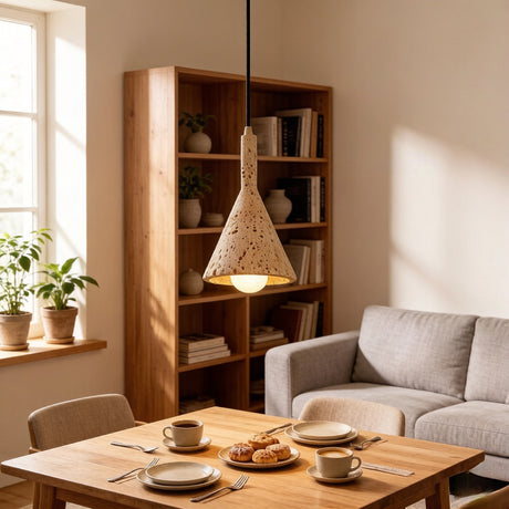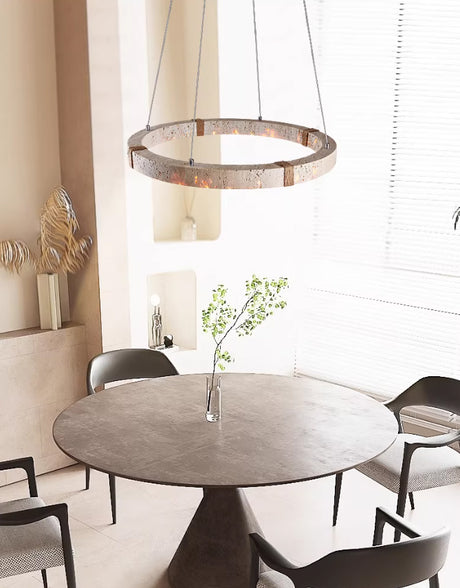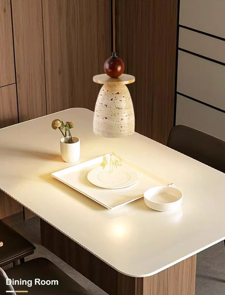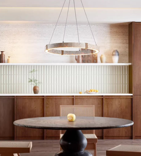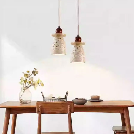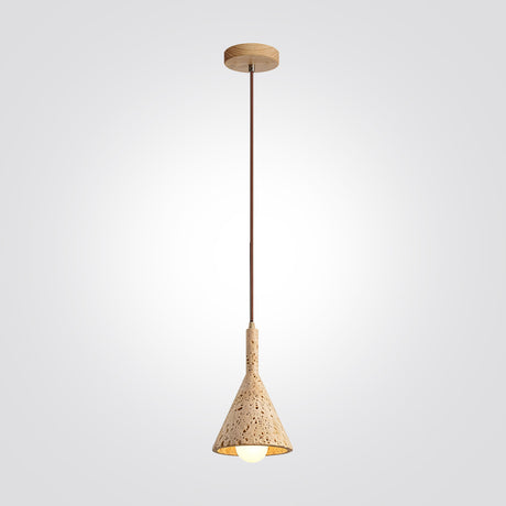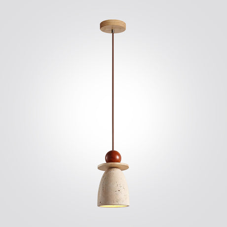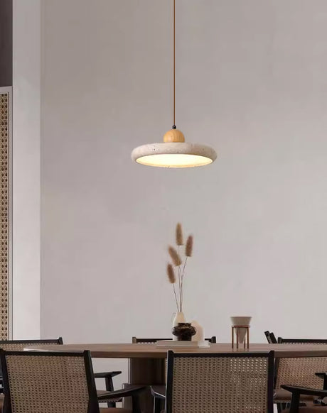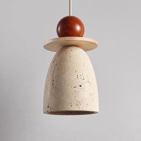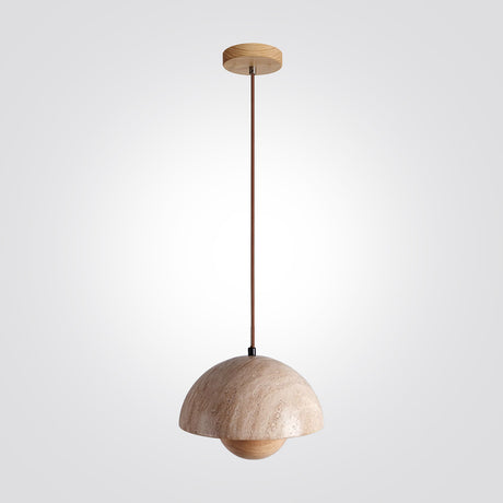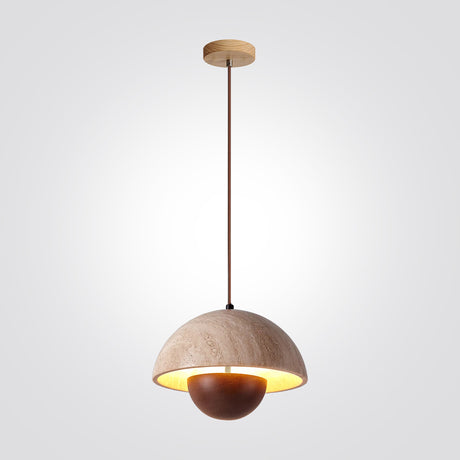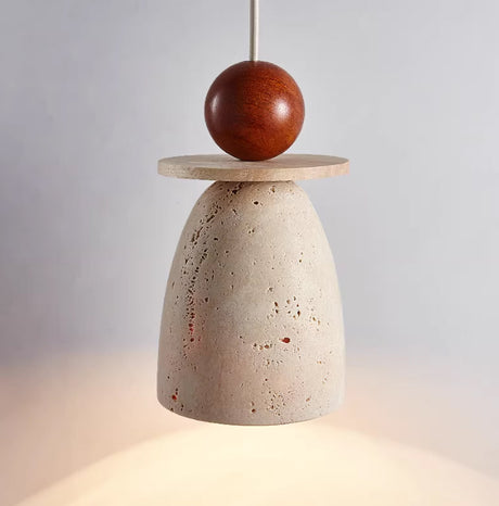 מנורת תלייה רוקה – אבן טרוונטין טבעית בשילוב עץ בהיר | LED