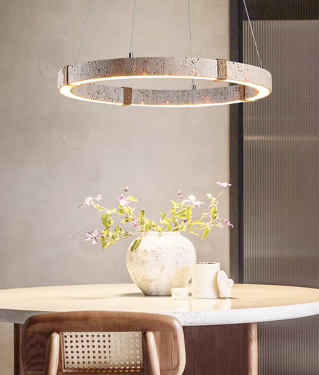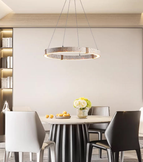 מנורת תלייה לומינה – טרוונטין טבעי | LED | קוטר 60 ס״מ