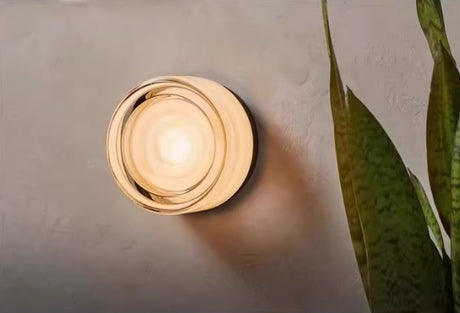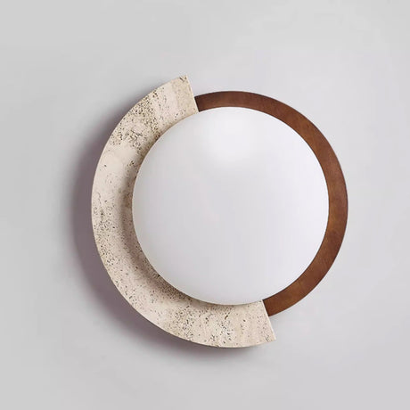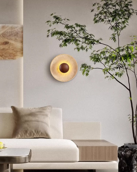 מנורת קיר לונה – טרוונטין טבעי וזכוכית | G9 | קוטר 20 ס״מ