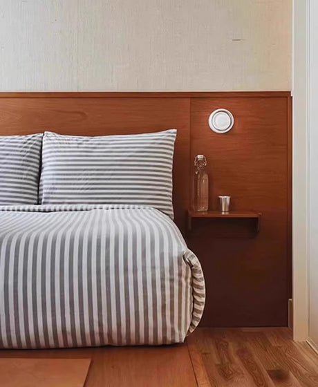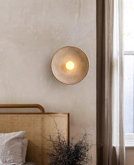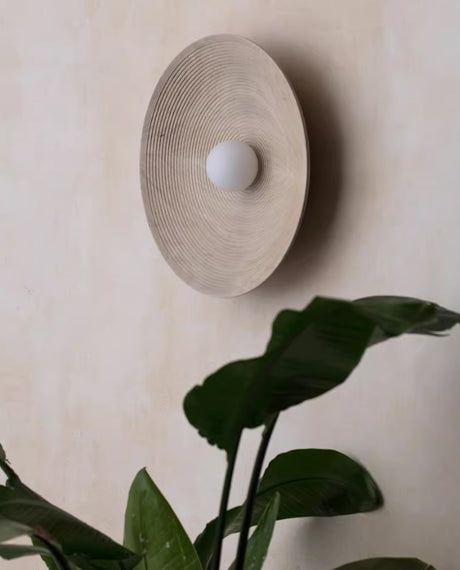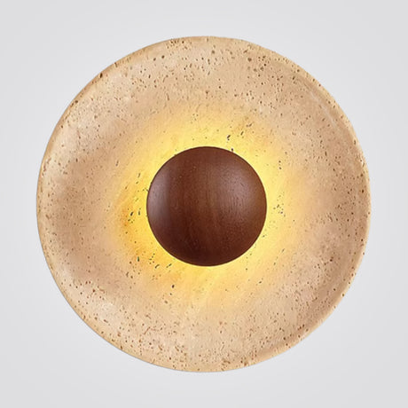 מנורת קיר טרה – אבן טבעית ועץ בהיר | LED | קוטר 25 ס״מ