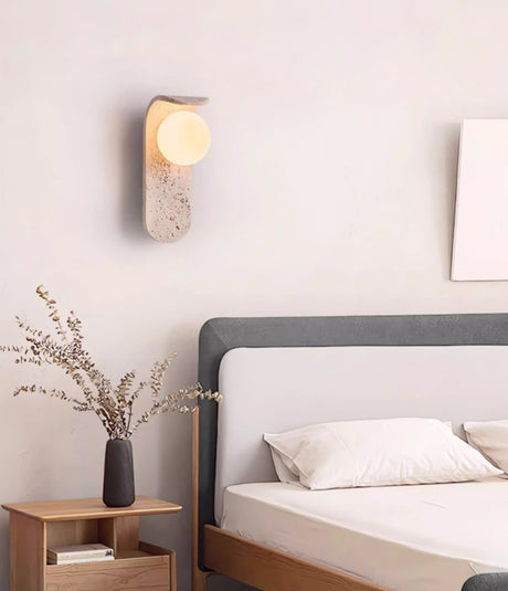 מנורת קיר לונה – טרוונטין טבעי וזכוכית | G9