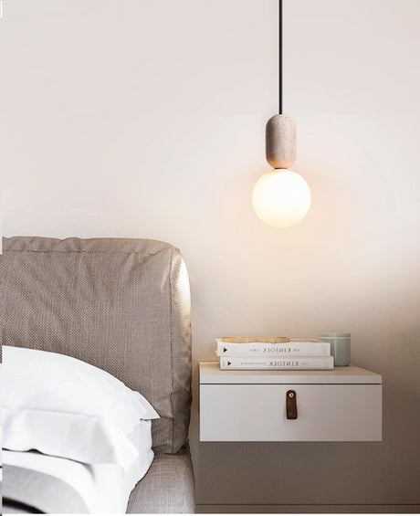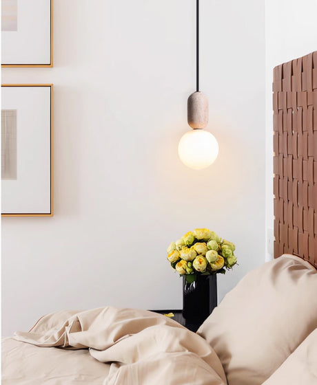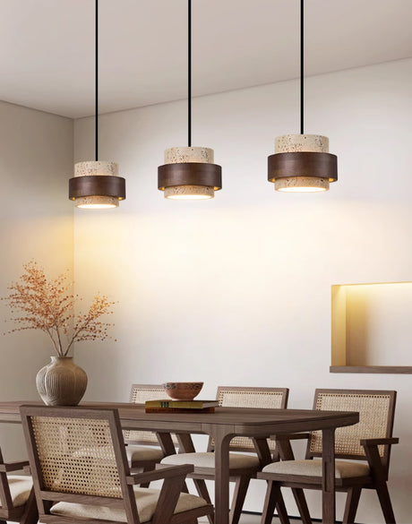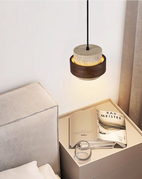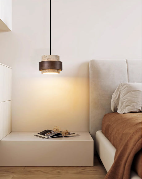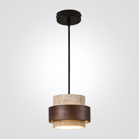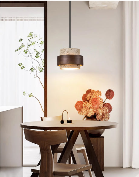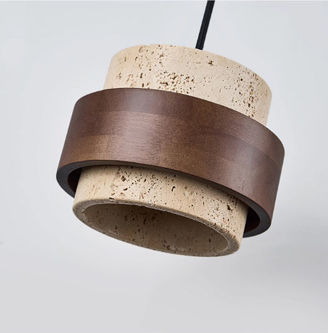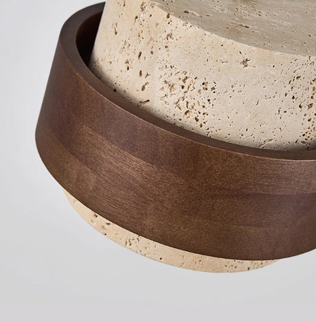 מנורת תלייה אבן טבעית טראוורטין + עץ כהה דגם | A