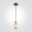 מנורת תלייה בעיצוב אלגנטי, אהיל זכוכית בשילוב אבן טראוורטין טבעית, גימור זהב