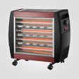 תנור חימום קוורץ עם 6 גופי חימום (2+4) לפיזור חום יעיל ומהיר. כולל מפזר חום (מאוורר מובנה) לחימום אחיד ומפסק בטיחות. גוף התנור מעוצב גריל כרום מבריק, וגלגלים לניידות.