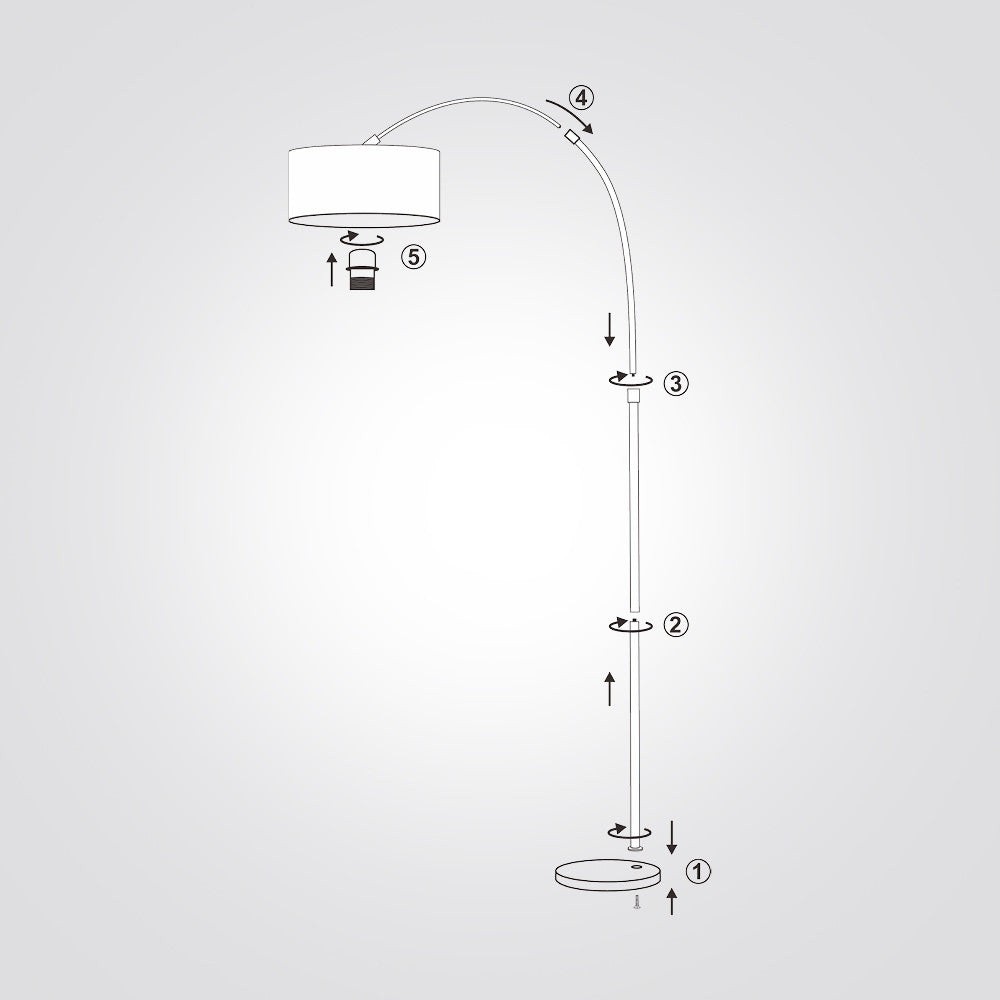 מנורת עמידה קשת בעיצוב מודרני, בגוון לבן עם אהיל בד קלאסי. מתאימה להשלמת תאורה בסלון, פינת קריאה או חדר שינה.