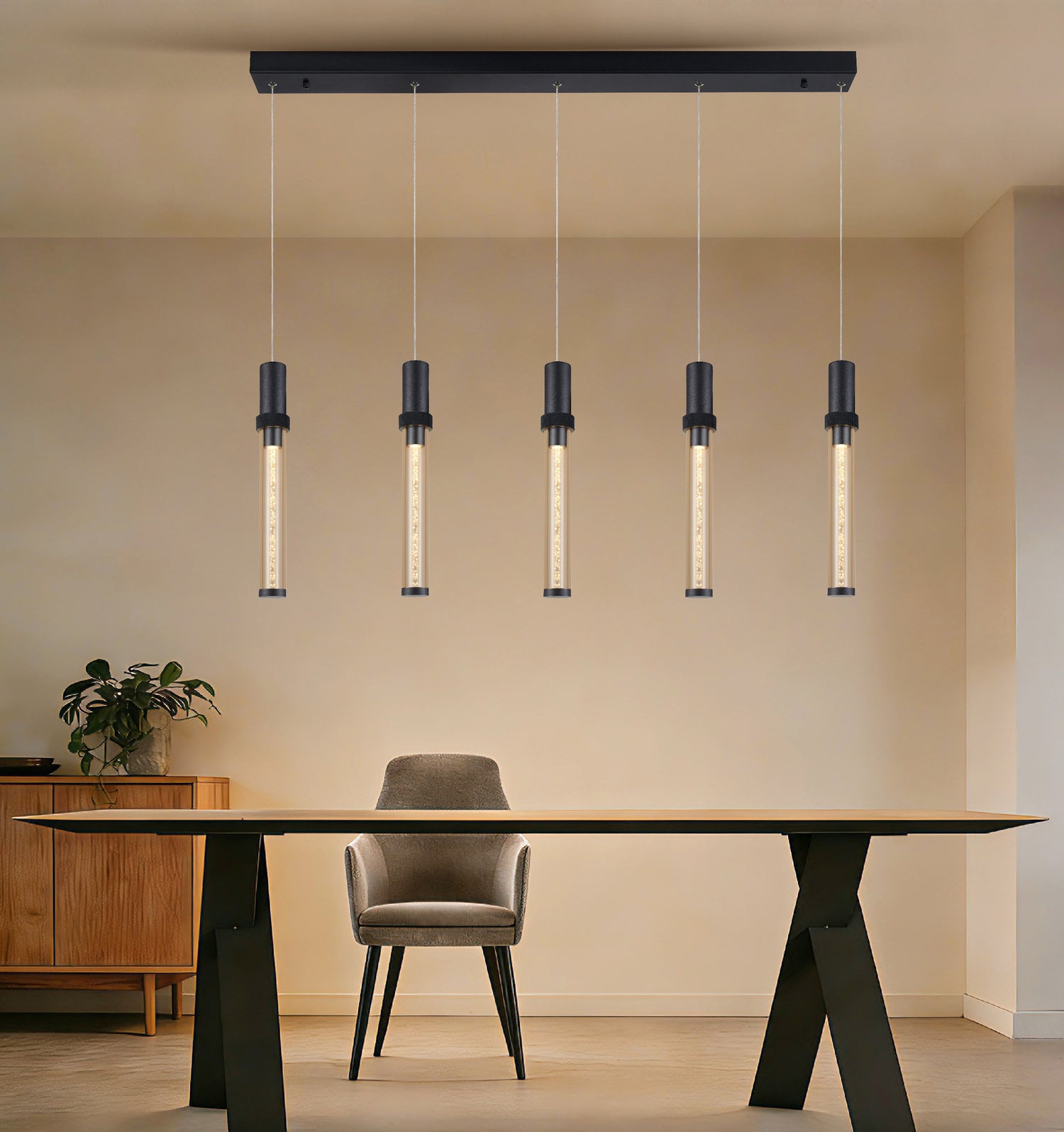 מנורת תלייה בעיצוב מודרני, תאורת LED מובנה, מתאימה לשימוש בחללים פנימיים כגון סלון, פינת אוכל, מסדרון, חדר שינה.