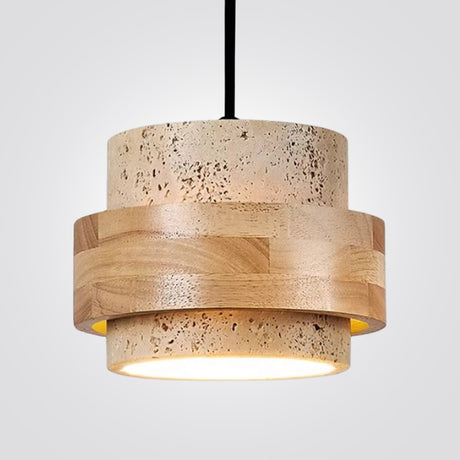 מנורת תלייה אורה – טרוונטין טבעי ועץ טבעי | דגם C-LW