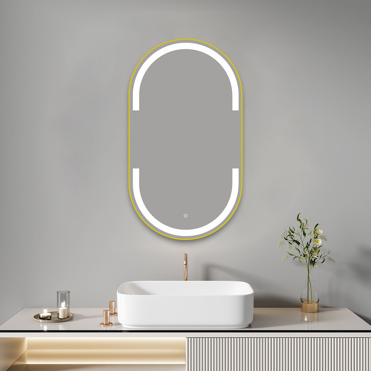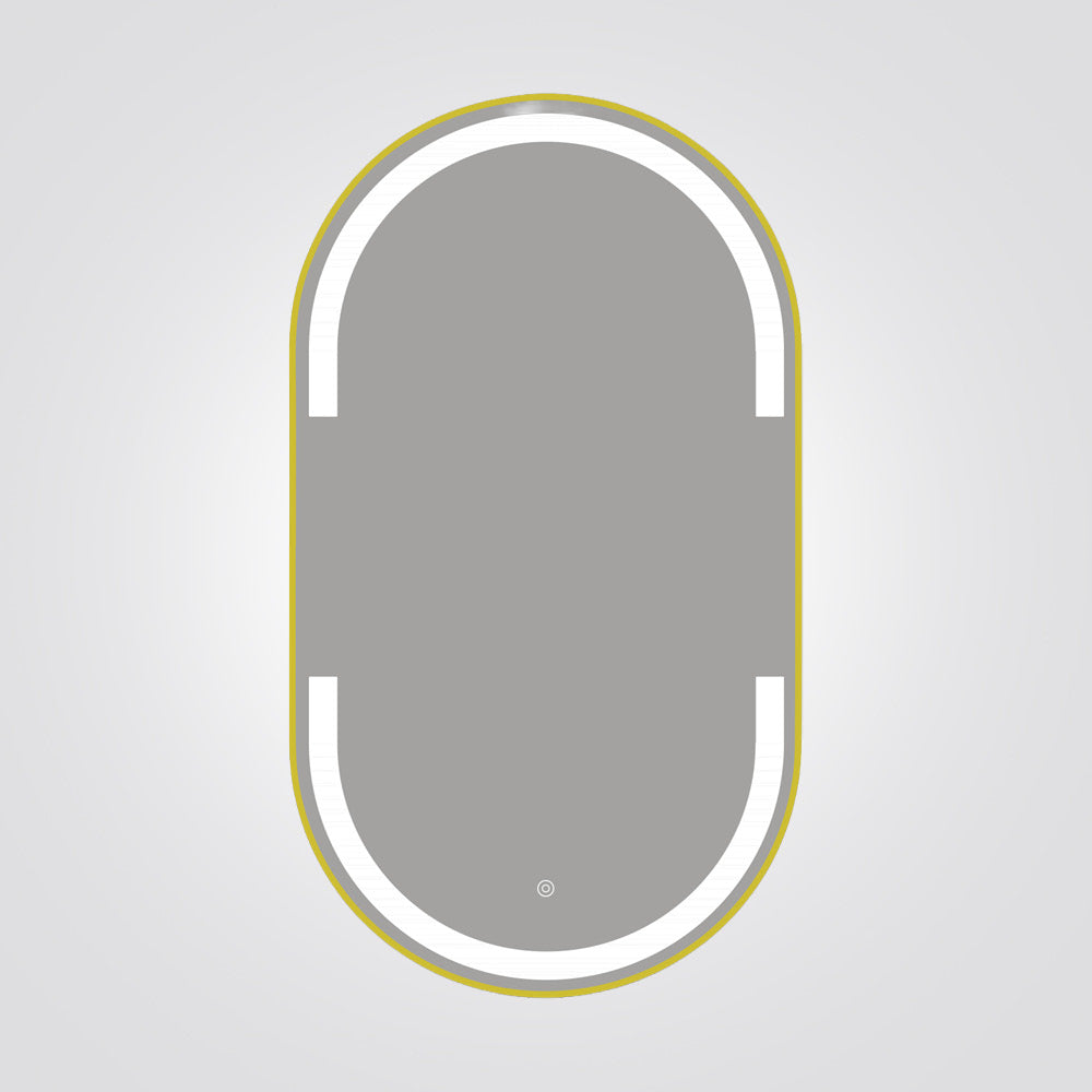 מראת LED אובלית 70×40 ס״מ עם מסגרת אלומיניום ומפשיר אדים – שחור / זהב - זהב המוצר יישלח ברגע שיחזור למלאי