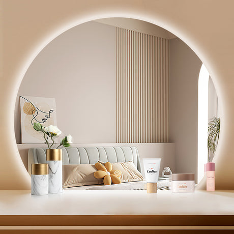 בחירה במראה עם תאורה מאפשרת לכם גם חיסכון במקום – אין צורך בגופי תאורה נוספים על הקיר, והתאורה משתלבת בצורה הרמונית עם עיצוב הקירות, הארונות והחדר כולו.