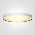 מנורת צמודה תקרה בסגנון מודרני מסדרת סידרא בצבע לבן פס זהב ,בעלת שלושה גווני אור מתחלפים /אור לבן/אור ביניים/אור חם ניתן לבחור את הגוון האור המועדף עליכם ע"י לחצן הנמצא בגוף התאורה