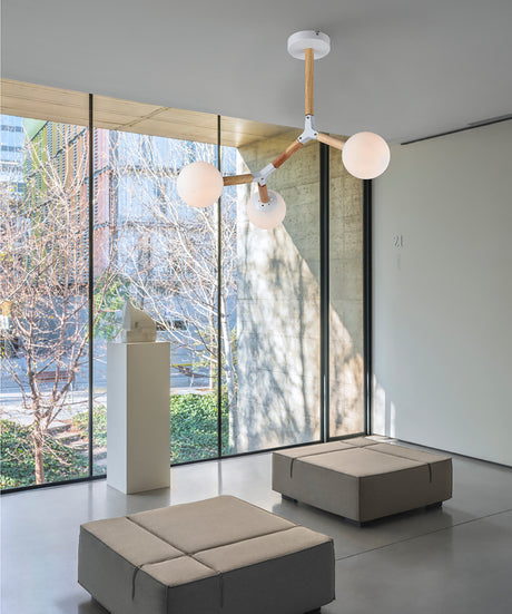מנורת תליה אווה לד| לבן+עץ|Φ60