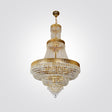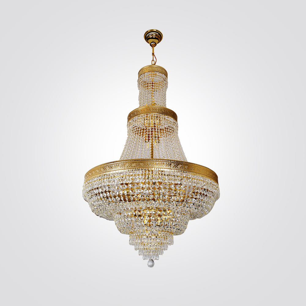 מנורת תלייה יוקרתית מתכת בצבע זהב שילוב קריסטל מתאימה לבתי כנסת, אולמות, חללים גדולים,