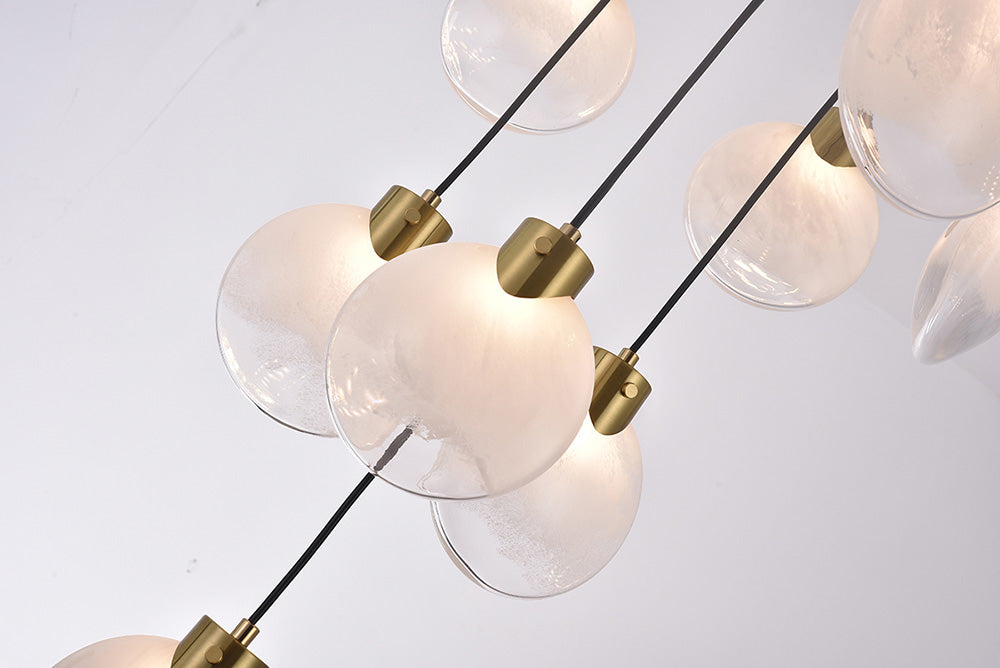 מנורת תלייה סלין – בסיס ישר עשירייה זהב מוברש, אהיל לבן רך | G9
