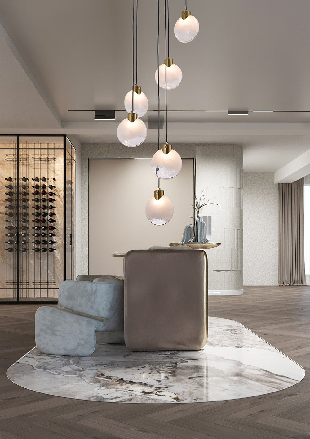 מנורת תלייה בסגנון מודרני, גימור זהב מוברש עם אהיל לבן במראה הדרגתי מתאים לנורה מסוג G9 (עד 25W)