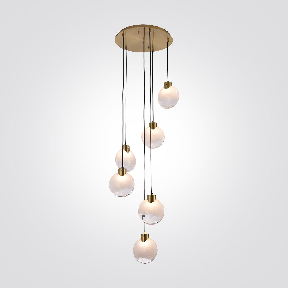 מנורת תלייה סלין – בסיס עגול שישייה זהב מוברש, אהיל לבן רך | G9