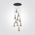 מנורת תלייה בעיצוב אלגנטי, אהיל זכוכית בשילוב אבן טראוורטין טבעית, גימור שחור