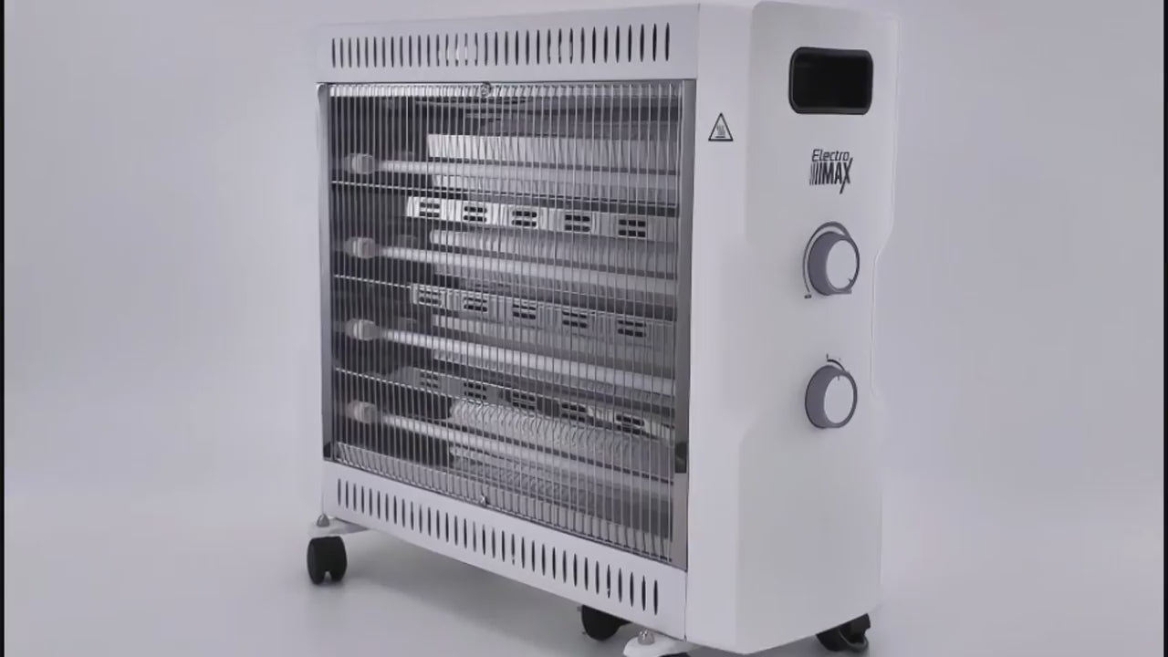 תנור קוורץ בעיצוב -קלאסי, מפיץ חום מיידי ואחיד בשלושה מצבי עוצמה (800 / 1600 / 2400 W) ומצויד בבקר טמפרטורה מובנה.
