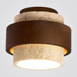 צילינדר תקרה בעיצוב טבעי, המשלב טרוונטין טבעי יחד עם עץ אגוז.